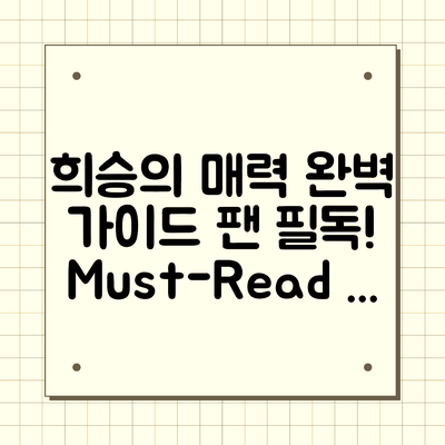 희승의 매력 완벽 가이드: 팬들을 위한 필독서