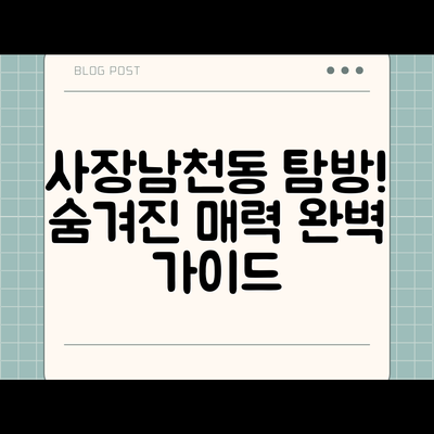 사장남천동 완벽 가이드: 숨겨진 매력 탐방